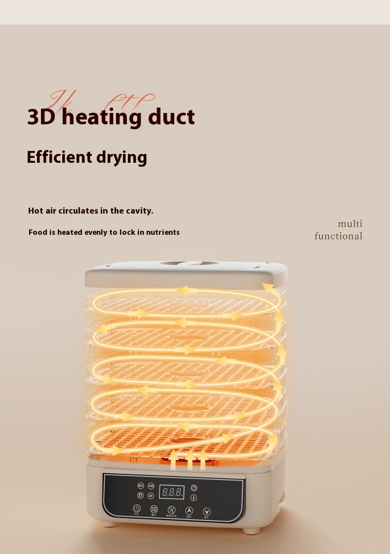 Portable food dehydrator built for home kitchens that value control and simplicity. Even heat circulation dries fruit, snacks, and herbs consistently while preserving flavor and texture. Compact design fits small spaces and stores easily. Ideal for healthy snacks, meal prep, and long-term food storage.
